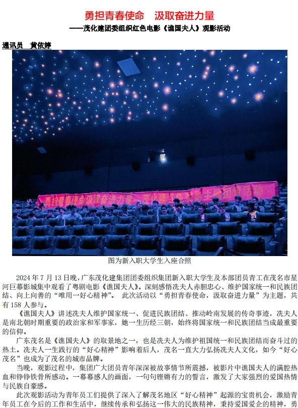 勇?lián)啻菏姑?汲取奮進(jìn)力量 ——茂化建團(tuán)委組織紅色電影《譙國(guó)夫人》觀影活動(dòng)